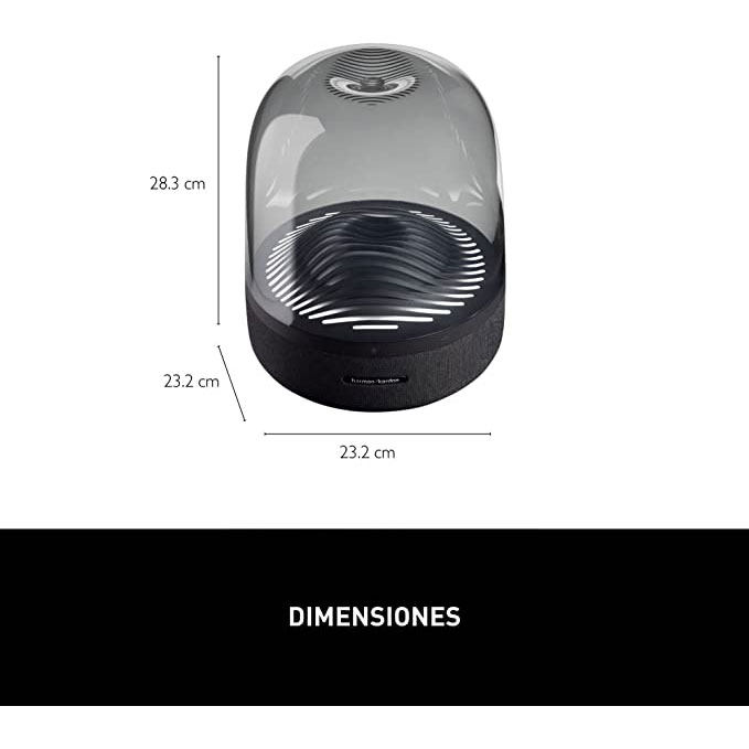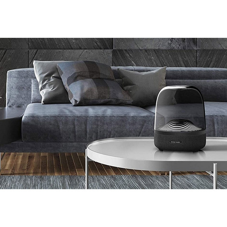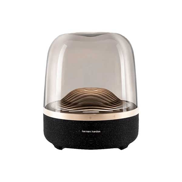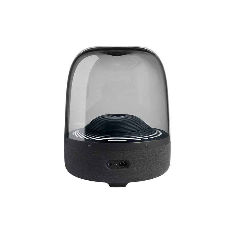 اسپیکر خانگی هارمن کاردون مدل Aura Studio 3نسبت به مدلهای قبلی خود تغییراتی داشته است که این سیستم صوتی را بروز تر کرده است. در نگاه اول توجه شما به اشکال موج شکل که در داخل گنبد شیشه ای وجود دارد جلب خواهد شد که جلوه ی زیبایی به این اسپیکر داده است. همچنین نورپردازی خارق العاده که با این اشکال موجی شکل ترکیب شده است نمایی چشمگیر ایجاد کرده است. البته این نور بسیار زیبا در محیطهای تاریک بیشتر نمایان شده و باعث جذابیت هر چه تمام تر این محصول لاکچری میشود. بر روی بدنه ی اسپیکر دکمههای لمسی برای کنترل اسپیکر وجود دارد که از طریق آنها میتوان دستگاه را روشن و خاموش کرد ، بلوتوث را روشن کرده و در حالت جستجو قرار داد ، نورپردازی را فعال و غیر فعال کرد و ولوم صدای اسپیکر را کم یا زیاد کرد.