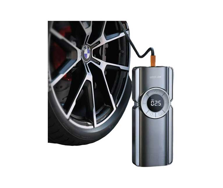 کمپرسور باد: پمپ باد گرین لاین Portable Jump Starter قادر است در صورت نیاز چرخ ماشین شما را باد کند. این دستگاه قادر به باد کردن انواع وسایل بوده و فشار مورد نیاز آنها را به صورت پیش فرض در خود دارد. عملکرد آن به این صورت هست که پس از اتصال به وسیله مورد نظر با فشردن یک دکمه شروع به باد کردن و رساندن باد آن به میزان مناسب میکند. میزان فشار تولیدی توسط جامپ استارتر و پمپ باد قابل حمل گرین لاین مدل GNJUMPSTAR برابر 150PSI بوده و دارای انواع سری برای باد کردن لاستیک های مختلف و توپ است.