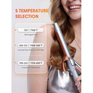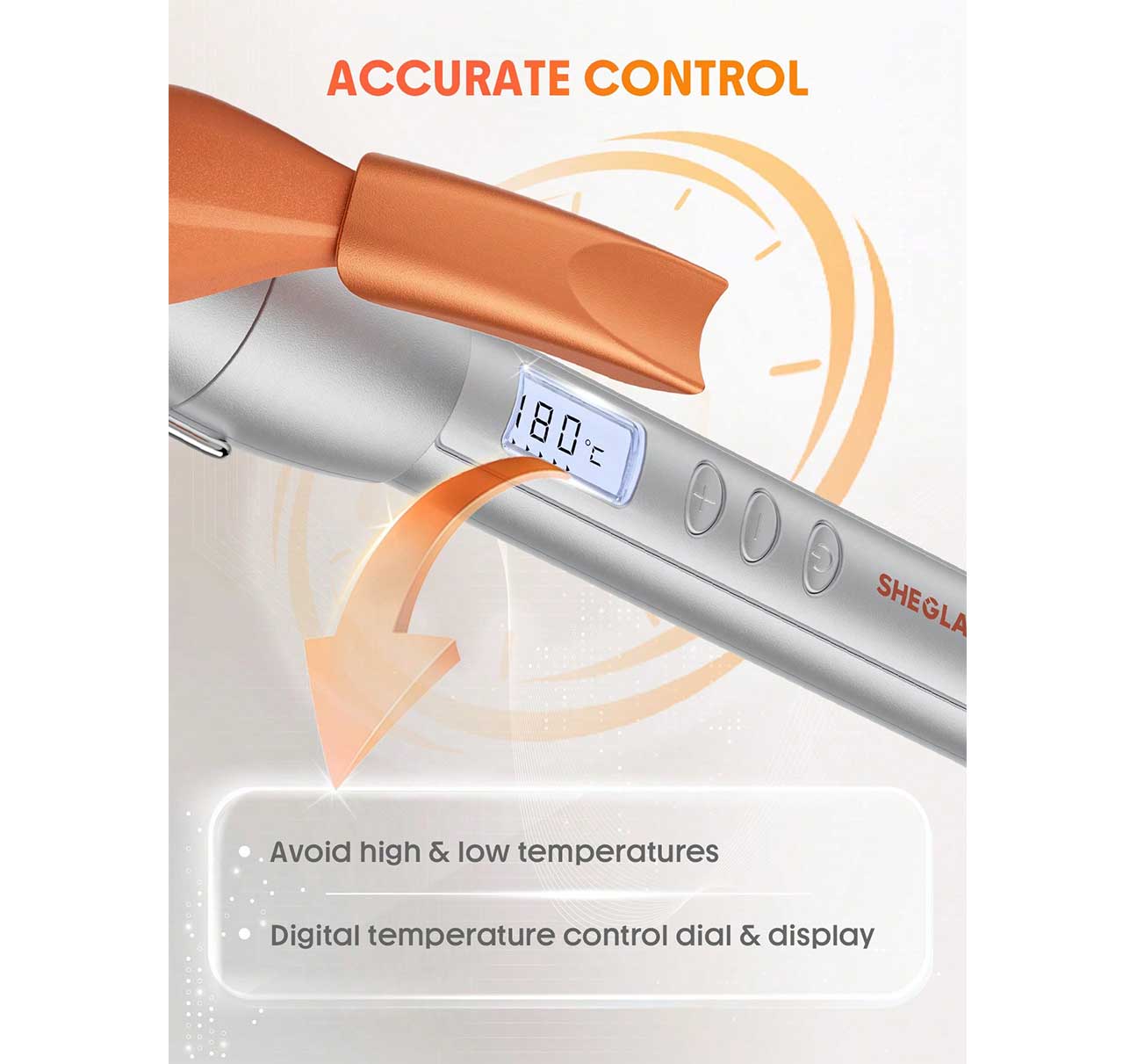 دستگاه بابلیس فر کننده مو شیگلم Sheglam سایز 25mm مدل It-Curl دارای تنظیمات مختلف دما است که امکان انتخاب دمای مناسب برای انواع مو را فراهم میکند. به این ترتیب، میتوانید دما را بر اساس ضخامت و نوع موهای خود تنظیم کنید تا بهترین نتیجه را بگیرید.