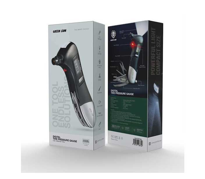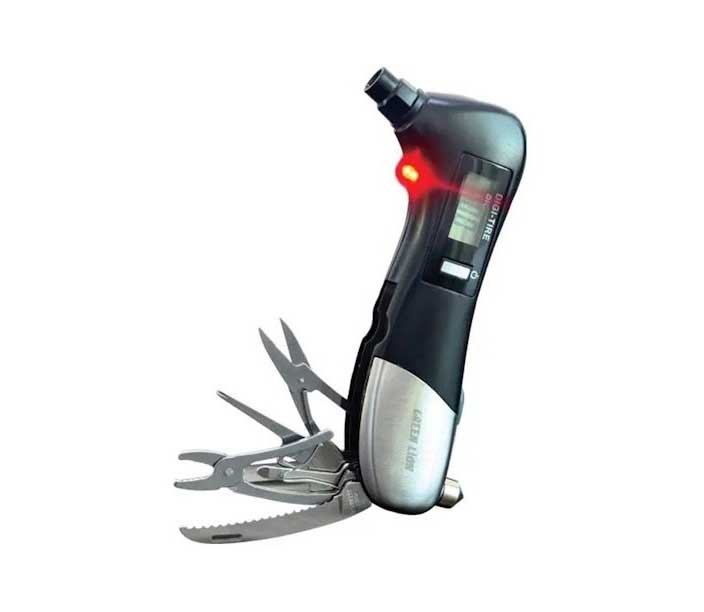 یک همراه ضروری برای هر راننده است. این ابزار چند منظوره برای اطمینان از ایمنی و راحتی شما در جاده طراحی شده است. دارای فشارسنج دقیق هوا می باشد و محدوده 2 تا 150 PSI و دقت 1± PSI است این امر نگهداری لاستیک را آسان و چراغ قوه LED در نور کم کمک می کند. این ابزار همچنین دارای چکش شیشه ای، پیچ گوشتی، قیچی، برش کمربند ایمنی و انبردست است. در مواقع اضطراری مفید هستند. این ابزار با عملکرد موثر در محدوده دمایی 0 تا 50 درجه سانتی گراد، برای مقاومت در برابر محیط های مختلف ساخته شده است. این دستگاه با یک باتری قلمی کار میکند (که همراه این محصول نمی باشد)، و اطمینان میدهد که میتوانید به راحتی آن را روشن نگه دارید، ابزار نجات 9 در 1 گیج فشار تایر دیجیتال Green Lion هم فشرده و هم بادوام است.