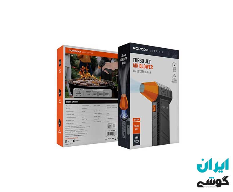 دمنده و داستر توربو جت ایر Porodo Lifestyle یکی از قدرتمندترین و همه کاره ترین ابزارهای تمیز کننده موجود برای حذف گرد و غبار و جریان هوا با سرعت بالا است. به طور ویژه برای این منظور طراحی شده است. بدنه با ABS، PC و فلزات براق و در عین حال بسیار بادوام ساخته شده است. دارای یک موتور قدرتمند براشلس است که می تواند تا 130000 دور در دقیقه برای حداکثر عملکرد و تنظیمات چهار سرعته حرکت کند. سرعت جریان هوا با سرعت 35 متر بر ثانیه و ظرفیت جریان هوا 160 گرم برای پاکسازی موثر وسایل الکترونیکی، صفحه کلید، فضای داخلی خودرو و عملاً هر گوشه و غبار، زباله و کثیفی است. باتری 2500 میلی آمپر ساعتی دارد که می تواند تا 2.5 ساعت کار کند و با کانکتور Type-C در عرض 2 ساعت در عرض چند دقیقه شارژ می شود. نازل هوای مغناطیسی امکان رویکرد دقیق تر و قابلیت استفاده آسان تر را فراهم می کند.