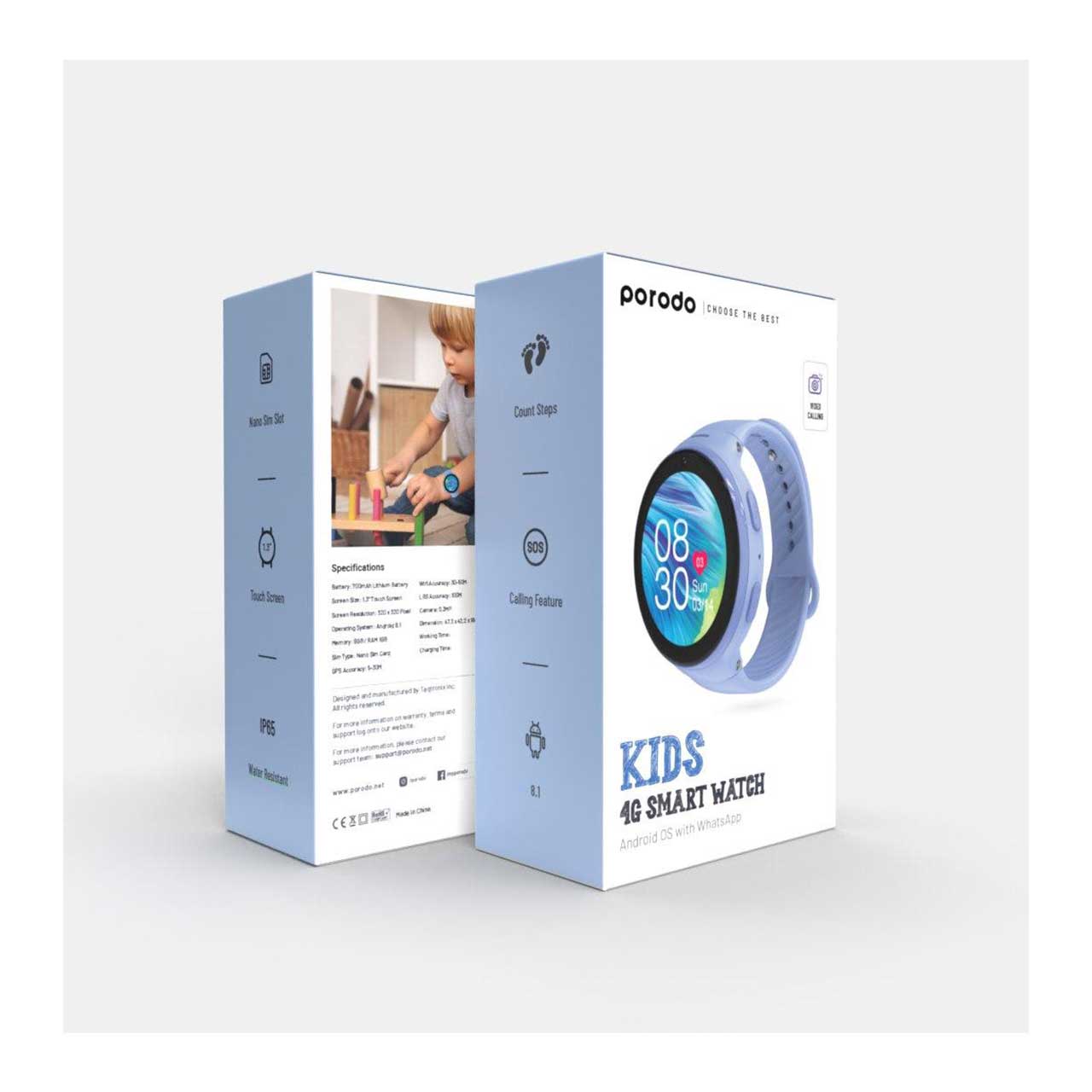 با ساعت هوشمند کودکانه Porodo 4G فرزندتان را غافلگیر کنید! این ساعت هوشمند دارای باتری ۷۰۰ میلیآمپر ساعتی است که تقریباً ۲ روز کار میکند. این ساعت هوشمند چند منظوره ویژگیهای متعددی از جمله شمارش گام، دوربین ۰.۳ مگاپیکسلی، مقاومت در برابر آب با استاندارد IP67، قابلیت تماس SOS و تماسهای ویدیویی را ارائه میدهد. این ساعت با دستگاههای اندروید و iOS سازگار است. این ساعت هوشمند میتواند به بهترین دوست فرزند شما تبدیل شود.