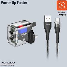| امکانات و قابلیتها | شارژر دیواری شفاف پرودو با فناوری Auto ID 2.4 (تشخیص هوشمند میزان جریان و محافظت در برابر شارژ شدن بیش از اندازه) یکی از بهترین انتخابها برای شارژ سریع و کارآمد دستگاههای الکترونیکی است |