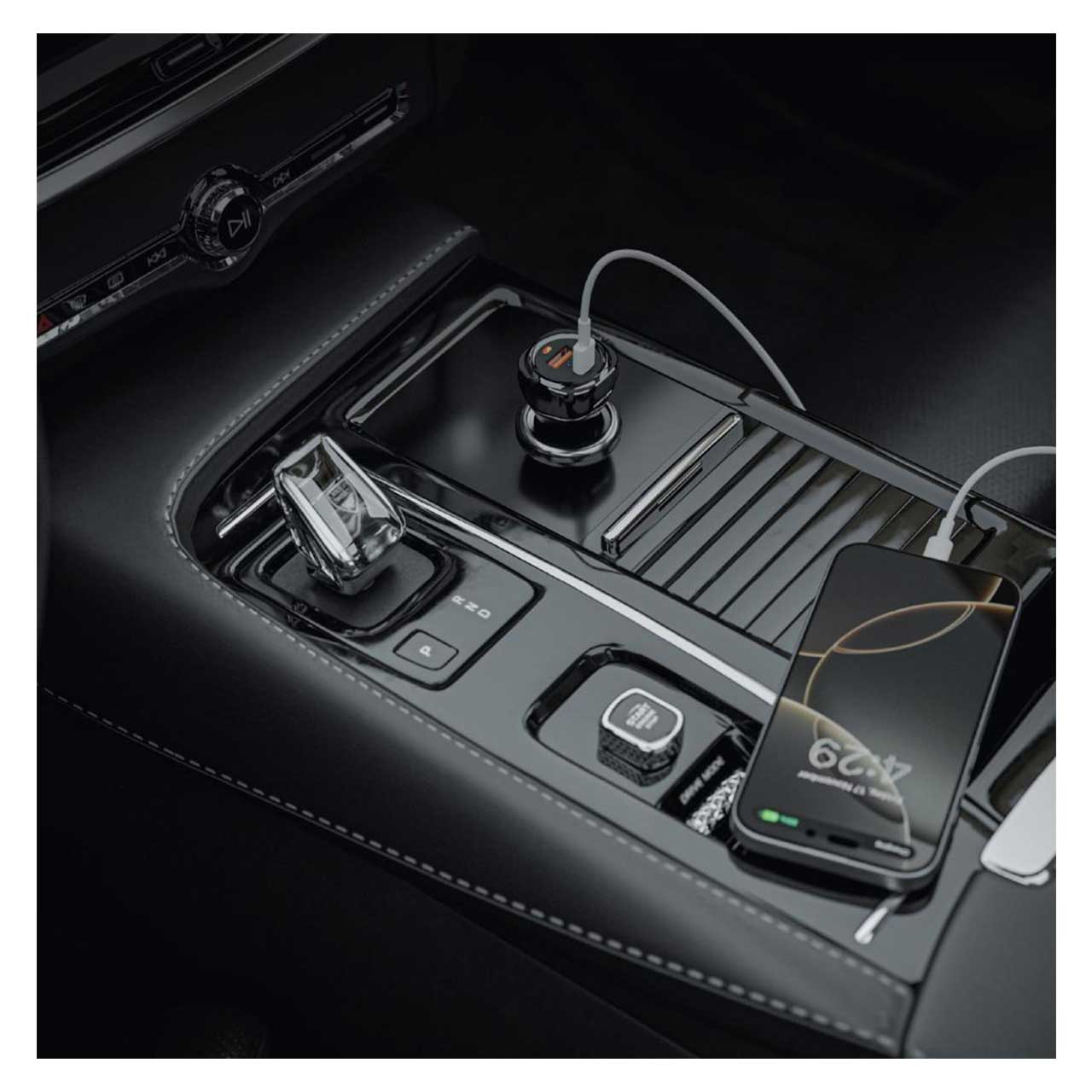 این شارژر فندکی بسیار قدرتمند و با قابلیت شارژ سریع برای استفاده در خودرو هست. این شارژر دارای دو خروجی :USB-A و USB-C است.