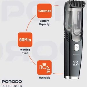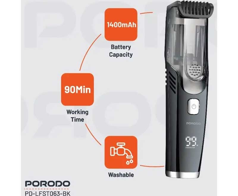 ریش و اصلاح بدن Porodo Lifestyle در رنگ مشکی عملکرد عالی را با ظرافت ترکیب می کند و نهایت راحتی را برای نظافت سریع فراهم می کند. این دستگاه از یک باتری 1400 میلی آمپر ساعتی استفاده می کند که با 3 ساعت شارژ کامل، 90 دقیقه استفاده می کند. سرعت موتور 8000 دور در دقیقه است که برای کوتاه کردن موی دقیق و فوق العاده سریع ایده آل است. با داشتن درجه ضد آب IPX6، تریمر ضد شستشو و مقاوم در برابر آب است و فرآیند تمیز کردن را پس از استفاده آسان می کند. عملکرد مکش هوا داخلی، بریده های مو را به طور موثر جمع می کند و آشفتگی شما را از بین می برد. یک نمایشگر دیجیتالی روی گرومر به شما امکان میدهد بدانید که چقدر عمر باتری باقی مانده است، در حالی که پورت شارژ Type-C شارژ را سریعتر و آسانتر میکند. چه برای ریش و چه برای بدن، این اصلاح همه کاره یک جلسه نظافت تمیز، تصفیه شده و بدون درد را ارائه می دهد.