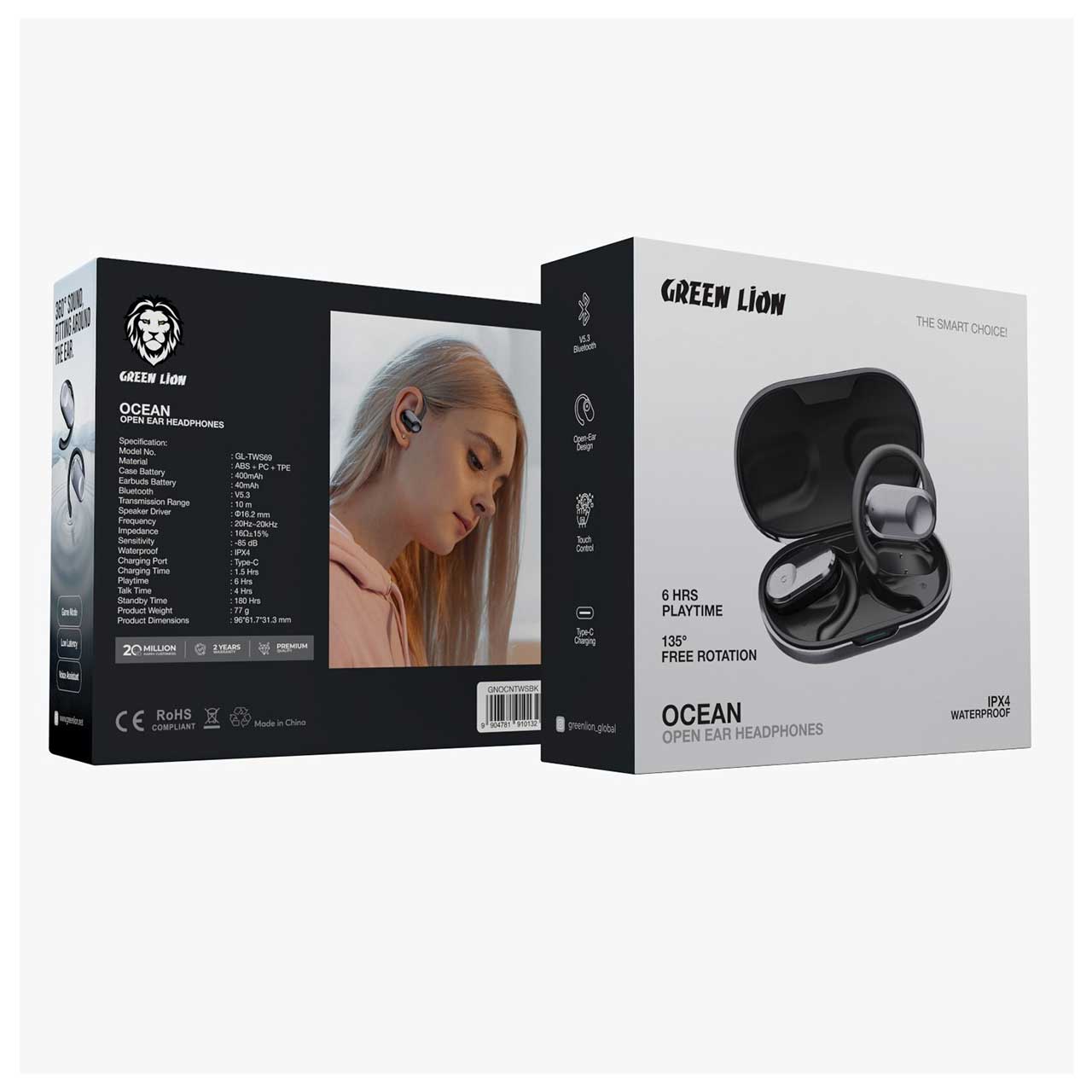 اگر میخواهید تجربه ای خاص از گوش دادن به موسیقی را تجربه کنید هندزفری بلوتوثی گرین لاین مدل Ocean Open Ear Headphones یکی از بهترین انتخاب ها برای شماست. برای استفاده روزمره و حرفه ای میتوانید از این محصول با طراحی خاص آن استفاده کنید. قطر بلندگوی این محصول Φ16.2 میلیمتر است. از جمله امکانات و قابلیت های این هندزفری بلوتوثی می توان مواردی مانند دستیار صوتی ؛ کنترل لمسی ؛ چرخش آزاد ۱۳۵ درجه ؛ تاخیر کم را نام برد.نسخه ی بلوتوث آن 5.3 است. مدت زمان شارژ شدن 1.5 ساعت است. به دلیل ساختار ظاهری که دارد برای ورزش های پر تحرک بسیار مناسب است از گوش شما نمی افتد و گوش را اذیت نمی کند.باکس به صورت بیضی شکل است و از سمت بالا باز می شود.