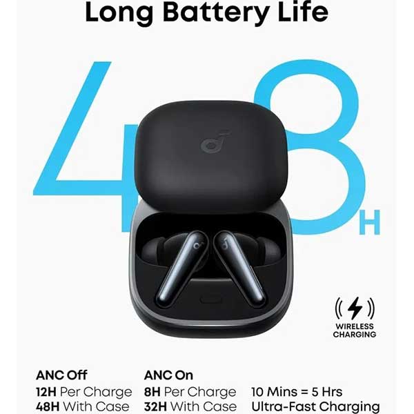 | میزان شارژدهی در حالت پخش | ANC فعال : 32 ساعت با باکس شارژ و 8 ساعت ایرپاد, |, ANC غیرفعال : 48 ساعت با باکس شارژ و 12 ساعت ایرپاد, |, با 10 دقیقه شارژ 5 ساعت شارژدهی در حالت پخش |