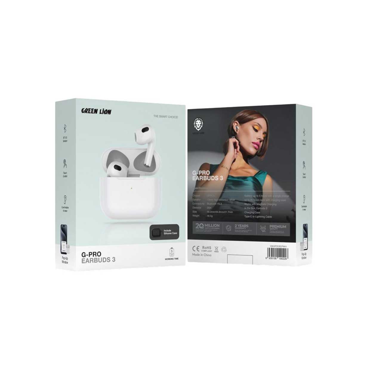 هدفونهای Green Lion G-PRO Earbuds 3 با ترکیب فناوری مدرن و عملکرد صوتی عالی، تجربه شنیداری فوقالعادهای را ارائه میدهند که به راحتی با سبک زندگی پرمشغله شما ترکیب میشود. این هدفونها دارای درایور قدرتمند ۱۳ میلیمتری هستند. آنها صدای واضح و غنی را برای تماسها، موسیقی و موارد دیگر ارائه میدهند. میتوانید روی برد ۲۵ متری و بلوتوث نسخه ۵.۳ برای استفاده بیسیم سریع حساب کنید. این هدفونها از شارژ MagSafe برای شارژ سریع پشتیبانی میکنند. آنها با یک بار شارژ تا ۵ ساعت دوام میآورند. با جعبه شارژ قابل حمل، عمر باتری تا ۲۰ ساعت افزایش مییابد. آنها یک پنجره بازشو مفید برای جفت شدن و نگهداری آسان ارائه میدهند. طراحی آنها راحت است و برای استفاده طولانی مدت به طور ایمن در گوش قرار میگیرد. این بسته شامل Earbuds 3، یک جعبه شارژ، یک کابل Type-C به Lightning و یک قاب سیلیکونی برای محافظت بیشتر است. هدفونهای Green Lion G-PRO Earbuds 3 که از چیپست پیشرفته GPRO+ بهره میبرند، عملکرد، سبک و کارایی را با هم ترکیب میکنند و آنها را به انتخابی عالی برای هر کسی که به دنبال یک همراه صوتی با کیفیت بالا است، تبدیل میکنند.