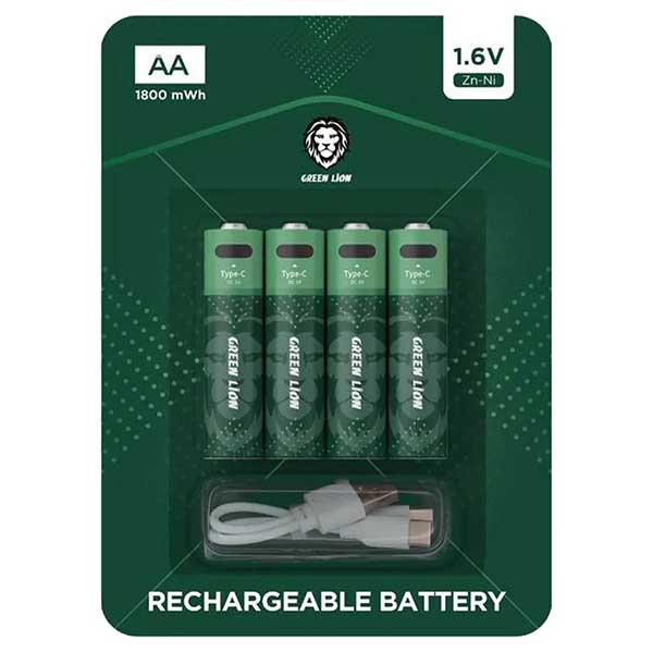 چهار باتری قلمی شارژی گرین لاین – یک کابل USB To Type C