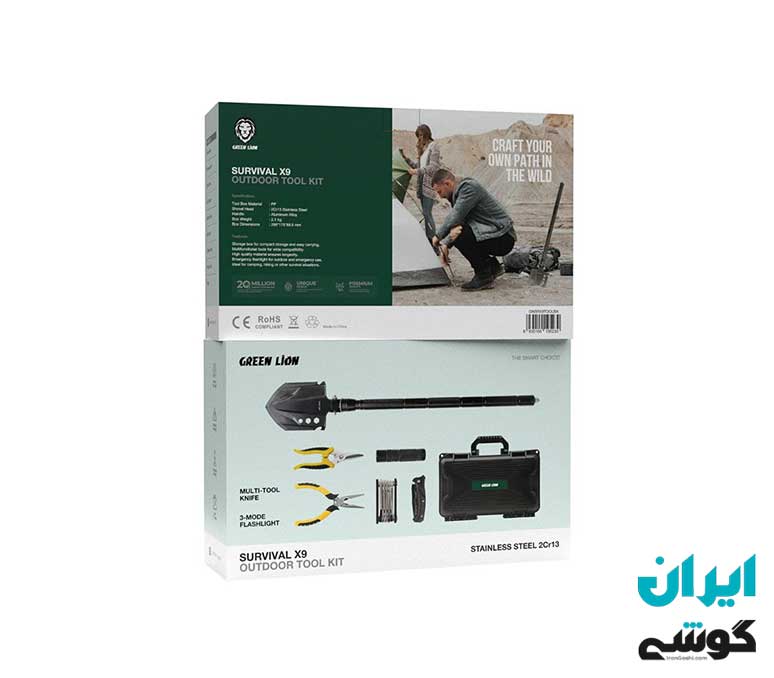 کیت ابزار بیرونی Green Lion Survival X9 یک ابزار همه کاره و مقاوم برای خارج از منزل و مواقع اضطراری است. ترکیب جعبه ابزار PP به همان اندازه ناهموار محیط لازم را برای این کیت فراهم می کند. بیل تاشو دارای سر فولاد ضد زنگ 2Cr13 و دسته های آلیاژ آلومینیوم برای استحکام و قابلیت حمل است. این کیت که به اندازه کافی کوچک است تا به راحتی حمل شود، شامل یک انبر برقی، چاقوی چند ابزار، سیم برش، چراغ قوه LED و مجموعه ابزار تعمیر است. تجهیزات اختیاری شامل یک مخروط حمله و دو میله گسترش است، در حالی که بند امکان حمل آسان را فراهم می کند. Green Lion Survival X9 که می تواند به راحتی در کمپینگ، پیاده روی یا سناریوهای بقا جا بیفتد، به گونه ای طراحی شده است که کمپ پسند و بادوام باشد و این ابزار را برای ماجراجویان در فضای باز و کسانی که برای بدترین چیزها برنامه ریزی می کنند، به یک ابزار ضروری تبدیل می کند.