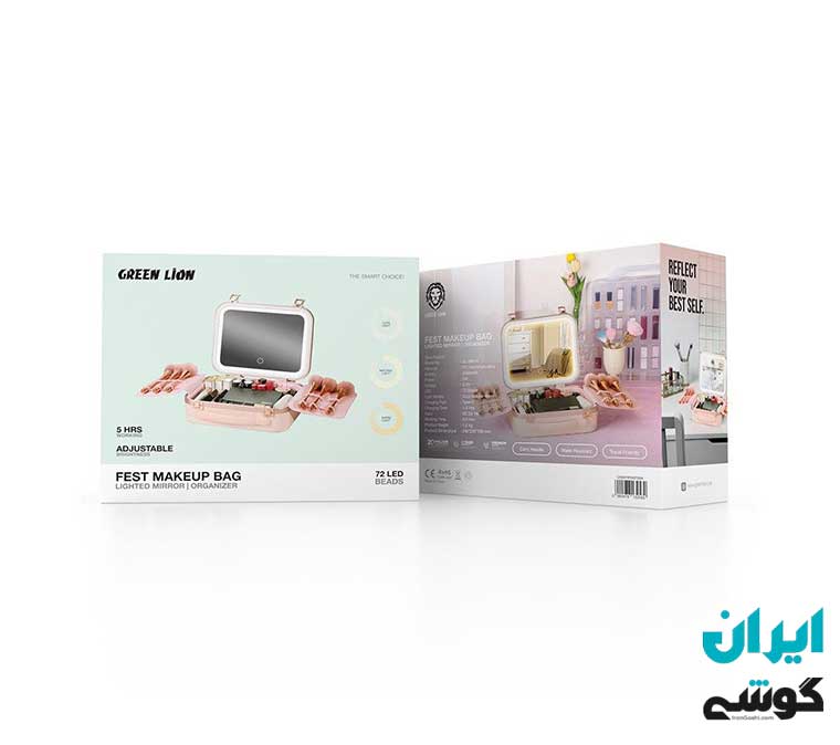 کیف آرایشی Green Lion Fest یک گزینه ذخیره سازی لوازم آرایشی چند منظوره، شیک و پیشرفته است. بادوام اما سبک وزن است زیرا از PC + آلیاژ آلومینیوم ساخته شده است. ظرفیت باتری 2000 میلی آمپر ساعتی آن، همراه با 72 مهره LED، حالت های نور سرد، طبیعی و گرم را تضمین می کند که به آن کمک می کند تا آن نور کامل را ایجاد کند. سوئیچ کنترل لمسی برای راحتی در تنظیم روشنایی امکان پذیر است، در حالی که پارتیشن ذخیره سازی قابل تنظیم همه لوازم آرایشی را مرتب نگه می دارد. آینه با وضوح بالا دقت را بهبود می بخشد و آرایش را آسان تر می کند. چنین قابلیت حمل، آن را برای علاقه مندان به زیبایی که در حال حرکت هستند، ضروری می کند.