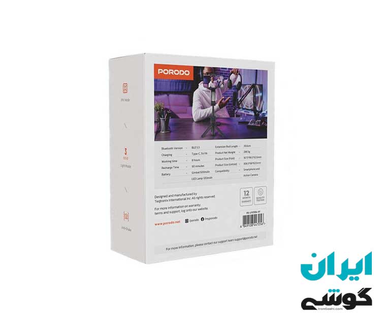تثبیت کننده گیمبال Porodo 2-Axis طوری ساخته شده است که تجربه فیلمبرداری شما را به سطحی کاملاً جدید ارتقا دهد و فیلم های فوق العاده با کیفیت حرفه ای را ثبت کند. با زمان کار تا 8 ساعت، این تثبیت کننده به شما امکان می دهد بدون وقفه عکاسی کنید، چه مستندات ماجراجویی یا توسعه محتوای رسانه های اجتماعی. گیمبال Porodo که با گوشی های هوشمند و دوربین های اکشن سازگار است، تطبیق پذیری عالی برای فیلم برداری از همه چیز ارائه می دهد. مجهز به یک چراغ قابل جدا شدن با سه حالت تنظیم، به شما کمک می کند تا در هر محیطی به روشنایی کامل برسید. این حالت منحصربهفرد FPV با حرکت و ردیابی روان عمل میکند، در حالی که فناوری لرزشگیر به شما اطمینان میدهد که حتی در حین انجام فعالیتهای پویا، عکسی را تا حد امکان روان بگیرید. تثبیت کننده گیمبال Porodo 2-Axis سبک و کاربرپسند، همراهی ایده آل برای فیلمسازان مشتاق و تولیدکنندگان محتوا است که می خواهند کیفیت ویدیوهای خود را بدون عرق زیاد بالا ببرند.