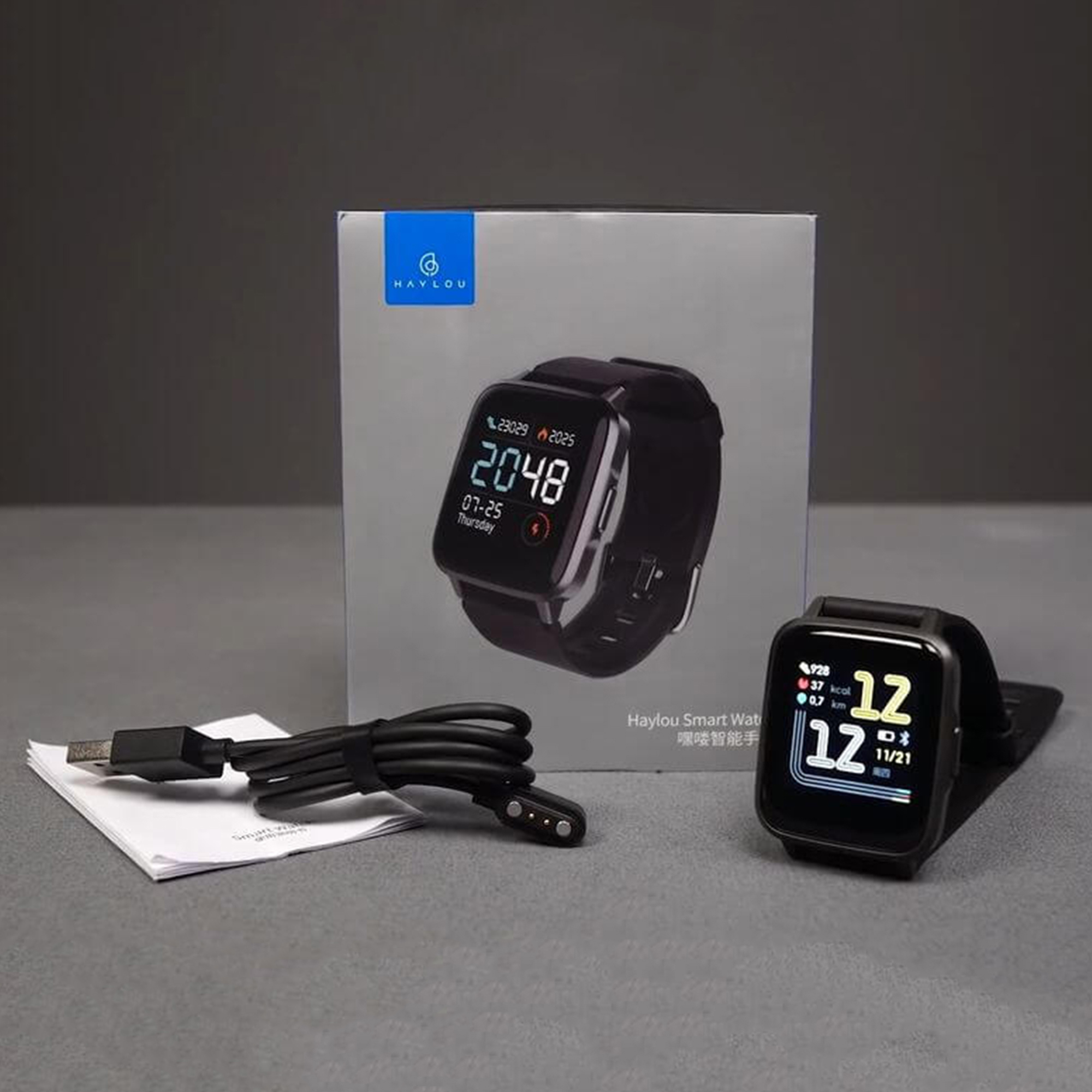 | اقلام درون جعبه | ساعت هوشمند - استند شارژ - بند سیلیکونی - دفترچه راهنما |