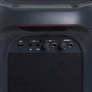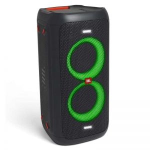 اسپیکر «Party Box 100» محصولی از شرکت «جی بی ال» است که به واسطه توان خروجی بالا؛ صدای پرقدرت و شفافی را در ابعادی وسیع، برای برگزاری مهمانیها و مجالس ایجاد میکند. علاوه بر حجم زیاد صدای خروجی، طراحی زیبا، افکتهای متنوع نورانی و قابل حمل بودن؛ این محصول را به یکی از منحصر به فردترین اسپیکرها تبدیل کرده است. همچنین با تهیهی پایه نگهدارنده، اسپیکر را میتوان به صورت عمودی در ارتفاعات گوناگون قرار داد. این اسپیکر از طریق فناوری بلوتوث، پورت USB وخروجی AUX به تلفنهمراه یا پخشکنندههای مختلف صوتي متصل میشود. اسپیکر Party Box 100 انرژی مورد نیاز خود را از طریق یک باتری داخلی لیتیوم یونی پر قدرت با ظرفیت 2500 میلی آمپر ساعت تامین میکند که برای پخشموسیقی به مدت 12 ساعت جوابگو هست همچنین از این باتری میتوان به عنوان پاور بانک برای شارژ انواع دستگاههای مختلف استفاده کرد. شارژ شدن کامل این محصول تنها 5 ساعت زمان میبرد که با توجه به ظرفیت بالای باتری زمان بسیار مناسبی هست. برای شارژ این دستگاه میتوان از منبع تغذیه برق شهر و یا منبع تغذیه ولتاژ ثابت(نظیر باتری ماشین) استفاده کرد که هر دو کابل مورد نظر در جعبه این محصول قرار دارد. توسط بلوتوث و یا کابل RCA(کابل استریو خانگی) میتوانید دو دستگاه Party Box 100 را به طور همزمان به یکدیگر متصل کنید؛ همچنین این محصول دارای ورودیهای مجزا برای میکروفون و گیتار هست که همه چیز را برای یک اجرای حرفهای فراهم میکند. جی بی ال Party Box 100 قابلیت کاراکوئه دارد که توسط آن میتوانید بر روی صدای خواننده همزمان با صدای خود خوانندگی کنید. اگر به دنبال یک اسپیکر پرقدرت هستید با توجه به قابلیتهای فراوان و کیفیت بالای محصولات برند جی بی ال بیشک انتخاب اسپیکر Party Box 100 میتواند جزو بهترین انتخابهایتان قرار گیرد.